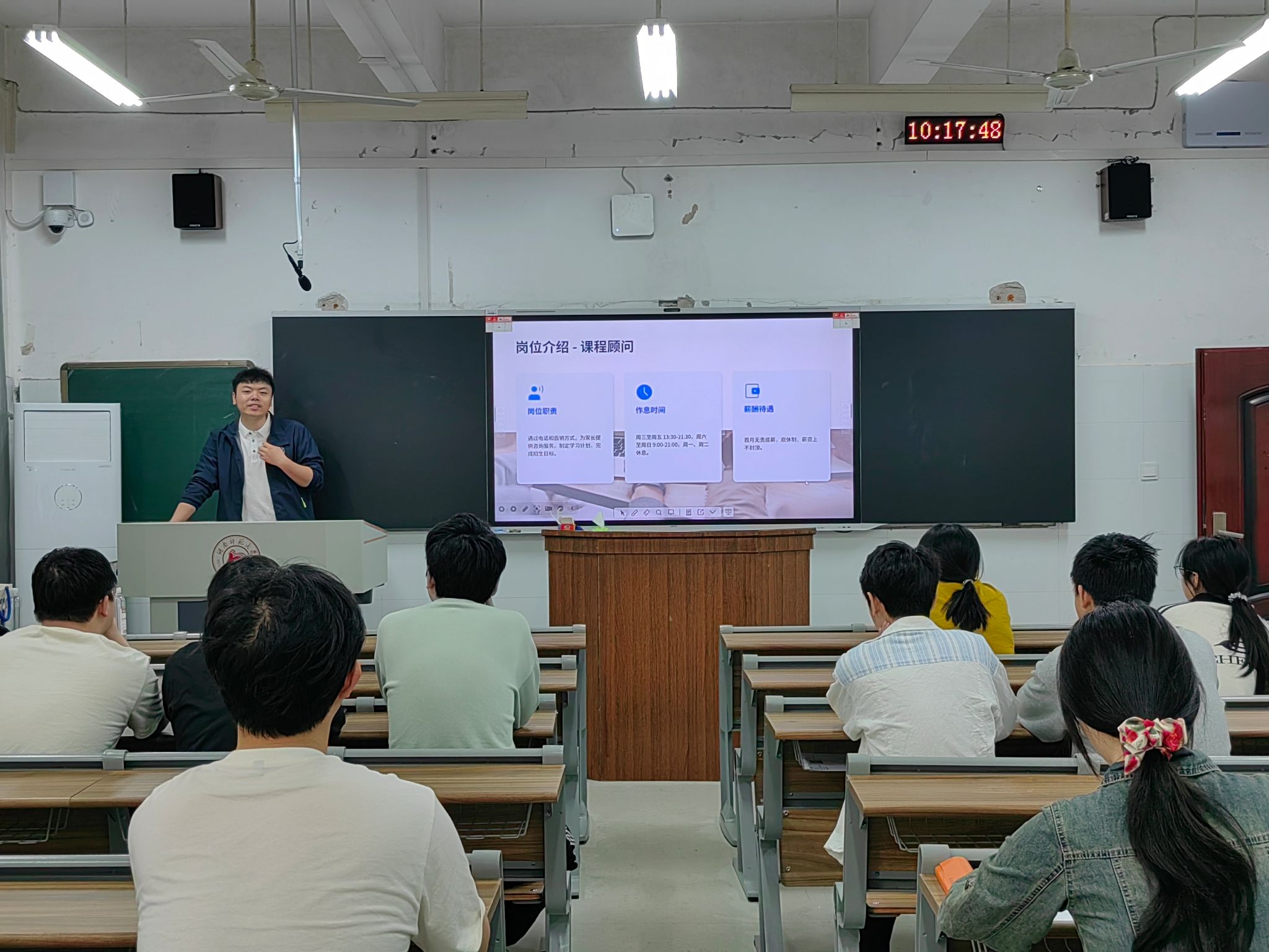 企业负责人杨微详细介绍了健义集团的发展历程、薪资待遇、岗位详情、职业发展、企业风貌及面试安排等内容,为同学们做了全面细致的分享。他围绕专业适配方向拆解岗位要求,结合自身经历解读企业人才培育与晋升通道,还拆解了面试全流程的考察重点与准备建议,为同学们求职提供了明确参考与实用指导。