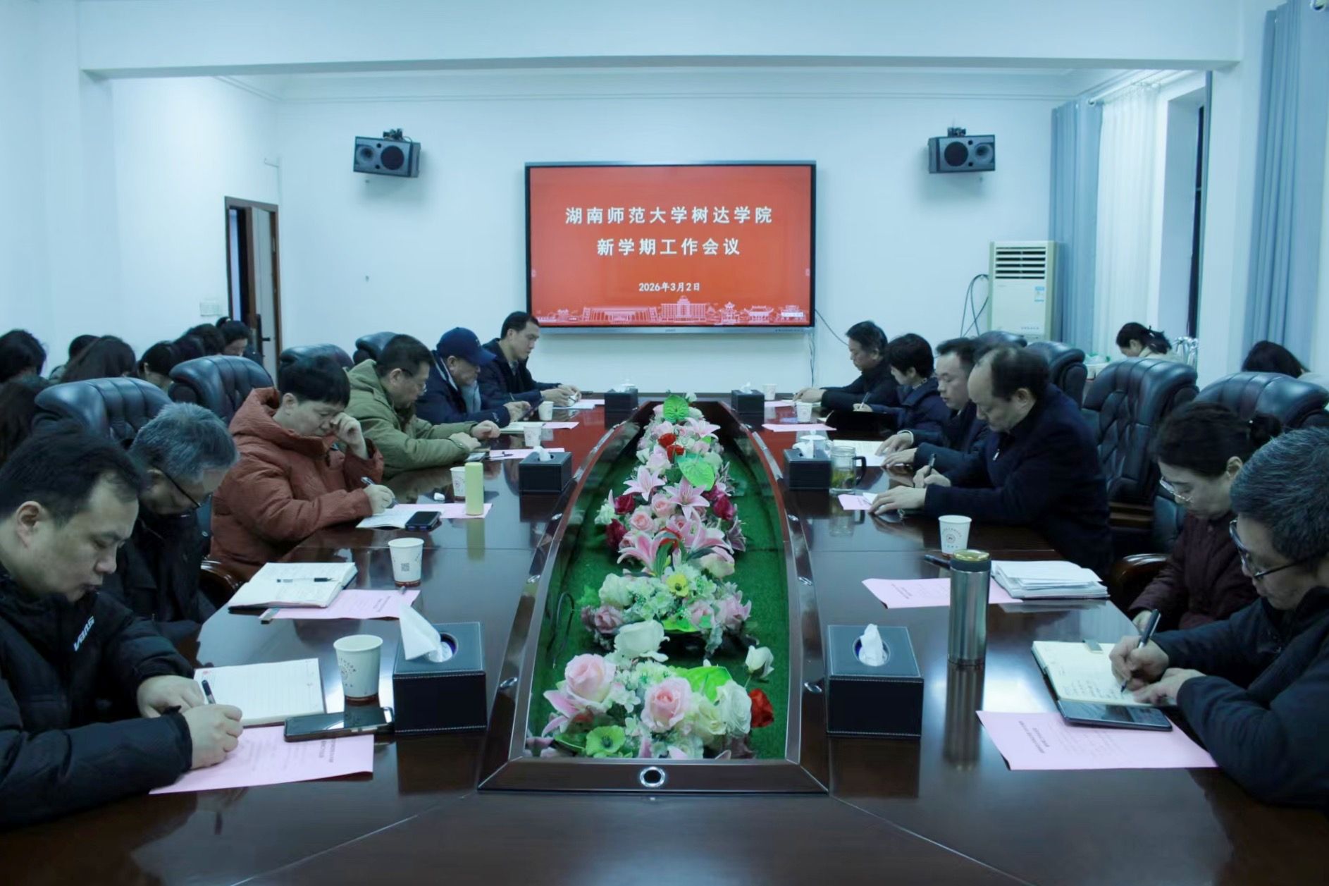 院长向坚持作了题为“凝心聚力担使命 砥砺前行谱新篇”的新学期工作报告。他回顾了2025年学院取得的成绩,并从加强政治学习,强化党建引领;聚焦学生培养,提升人才培养质量;攻坚历史遗留问题,实现树达学院完美谢幕;稳步推进转设,确保平稳过渡;保障校园稳定,提升校园品质等五个方面对新学期工作进行了安排部署。