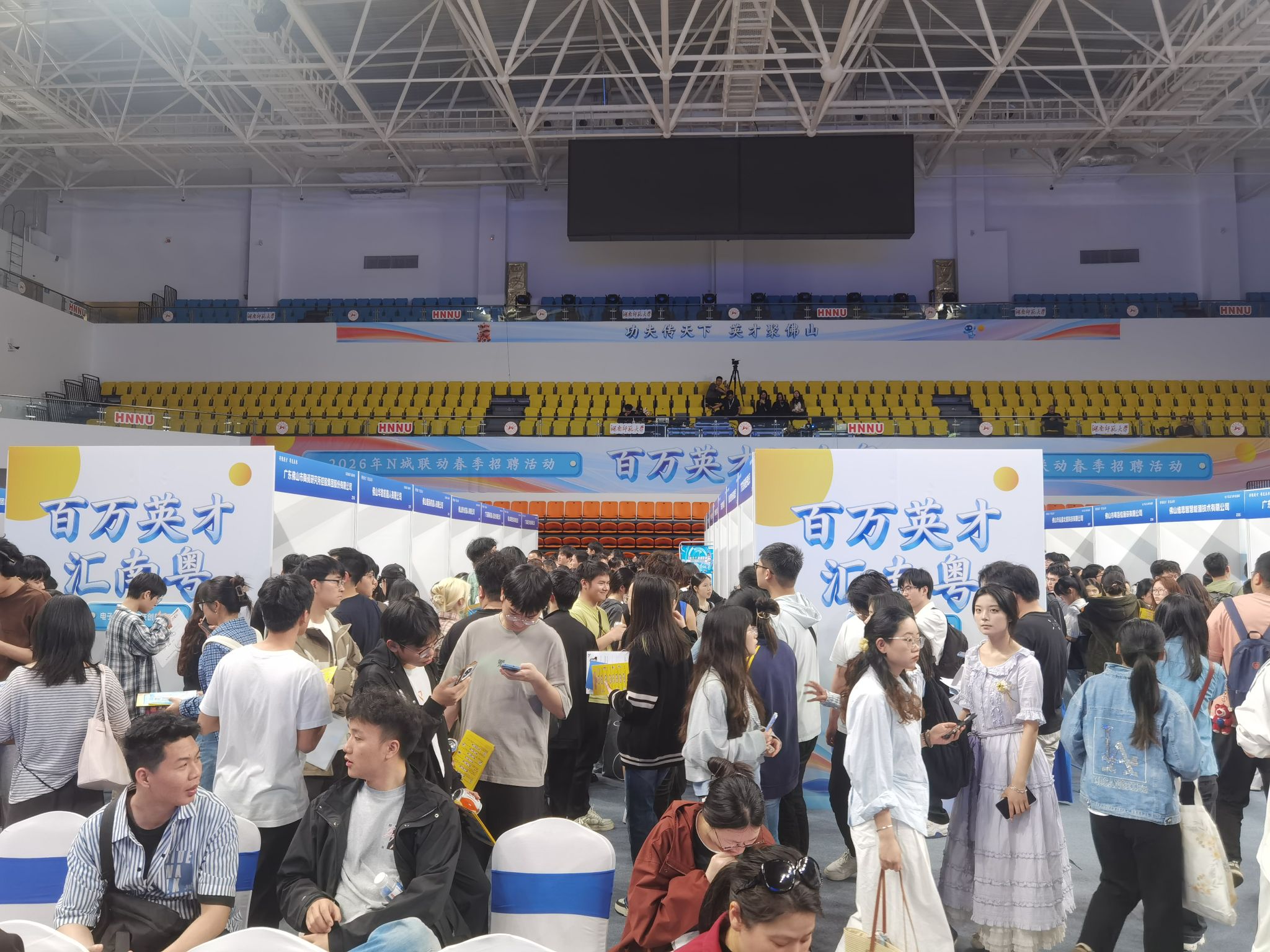 (通讯员 龚璇)为进一步畅通毕业生求职渠道,抢抓春季招聘黄金窗口期,拓宽省外优质就业路径,精准满足毕业生多元化、个性化求职需求。4 月 25 日,我院就业办李小燕老师带队,组织大四应届毕业生及大三在校生前往湖南师范大学江湾体育馆,参与 “百万英才汇南粤” 专场招聘会,切实为学子搭建精准高效的就业对接桥梁。